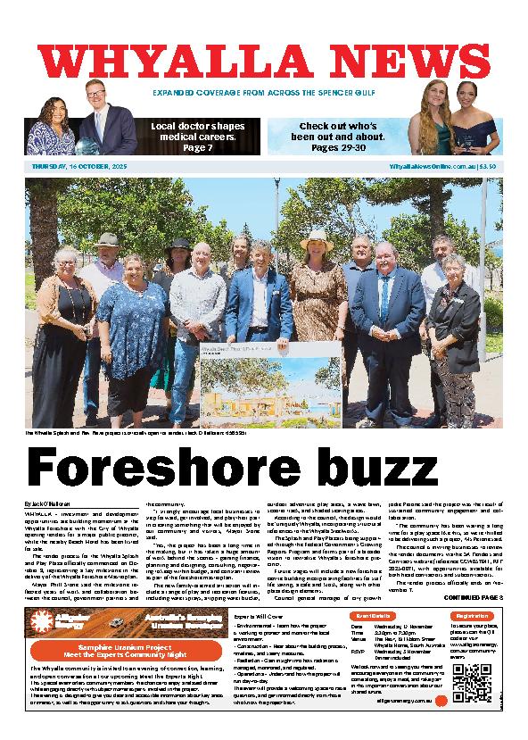 The Whyalla News – 16th October 2025 Subscribe or Login to see the rest of the content. Username Password * Remember Me Forgot Password News Youth find their groove 18/10/2025 PORT AUGUSTA – Music and movement filled classrooms and studios across Port Augusta recently as youth arts organisation Carclew brought its Gig Rig... Smiles that shine after 50 18/10/2025 ADVERTORIAL - As we move into our 50s and beyond, life should be about enjoying the good things, food, laughter, travel, and time with... Stay prepared, stay protected this summer 18/10/2025 Summer is almost upon us. Across the country, we are beginning to notice the temperature getting warmer, the days getting longer and even the...