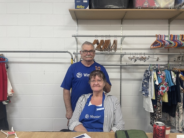 Port Augusta local Stephen Hudson with wife Pam at Vinnies - Stephen spoke about his worklife and volunteer work in Port Augusta in this week's Those were the Days.