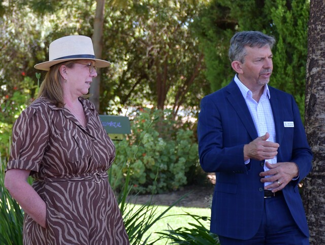 Federal Transport Minister Catherine King alongside Whyalla chief executive Justin Commons at a press conference earlier this year. (Jack O'Halloran). 515975.