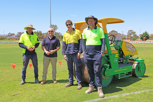 The Port Pirie council parks and recreation team of Justin, Allan, Mark and Blake have recently completed a program in pitch maintenance (supplied)