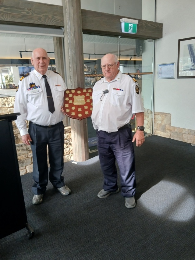 Port Augusta Coastguard commander Garry Gliddon receiving an achievement award for the work he has carried out in his newly appointed role with the group. (supplied)