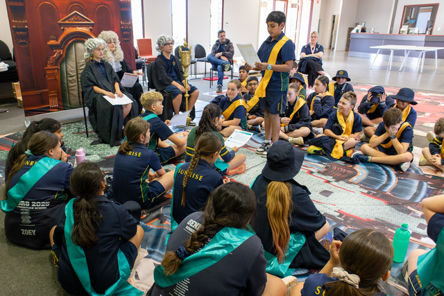 Students in Whyalla acting out the State House of Assembly. (Supplied).