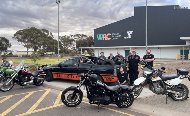 The Steel City Toy Run will be kicking off at the Whyalla Rec Centre this year, with stands up at 10am. Pictured is Damon McDonald, Mandy Smith, Adrian Dyer, Brett Johnston, David Birdseye, Darrell Risborg, Ian Worth, Callum Smith, Emily Rawlings. (Jack O'Halloran). 517660.