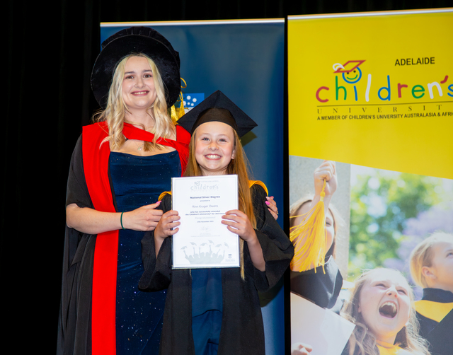 Dr Jacqui Barsby with one of the Children's University graduates, Rinn Kruger Owens. (Supplied).