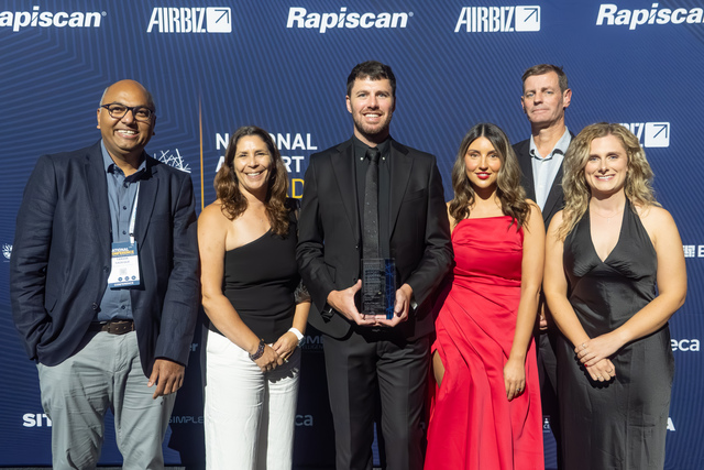 Whyalla City Council and Fulton Hogan staff accepting the award for Corporate Project of the Year under the Small Regional Airport/Aerodrome category. (Supplied).
